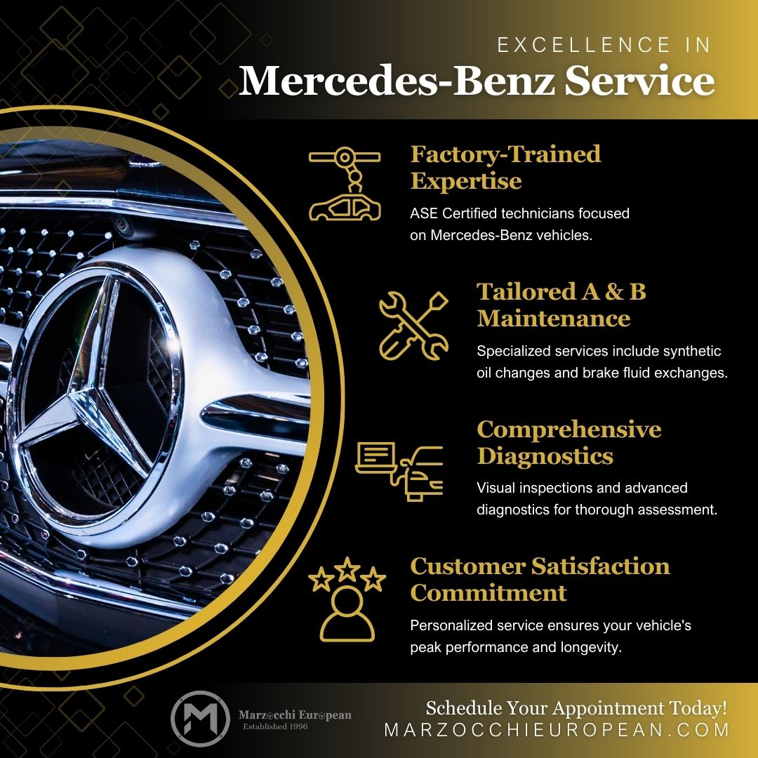 At Marzocchi European, we prioritize customer satisfaction and transparency in all our European car services. When you choose us for your Mercedes repair and maintenance, you can trust that your vehicle is in expert hands. Experience the difference our dedicated team and superior service can make for your Mercedes-Benz by calling us to schedule an appointment today.